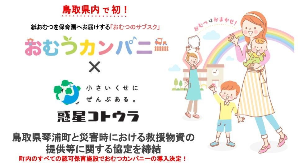 株式会社ブリッジウェル(本社:東京都江東区)は、保育園向け紙おむつサブスク「おむつカンパニー」を鳥取県琴浦町の全認可保育施設に導入し、更には災害時の物資提供協定を締結します。この取り組みにより、日常生活のサポートと災害時の安全な環境提供を目指します。